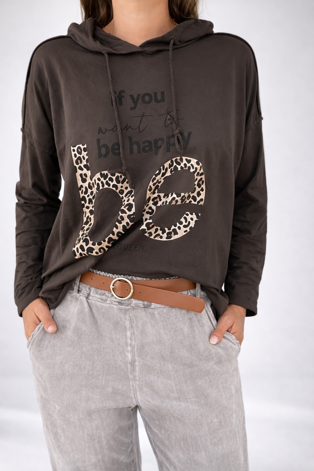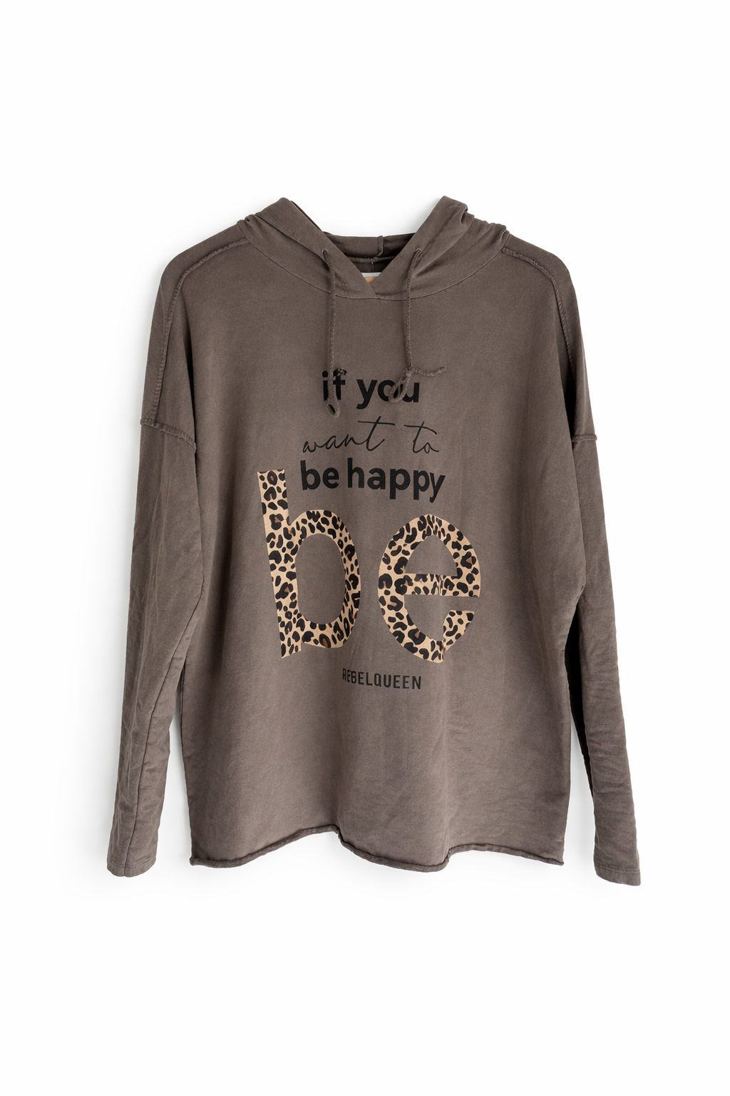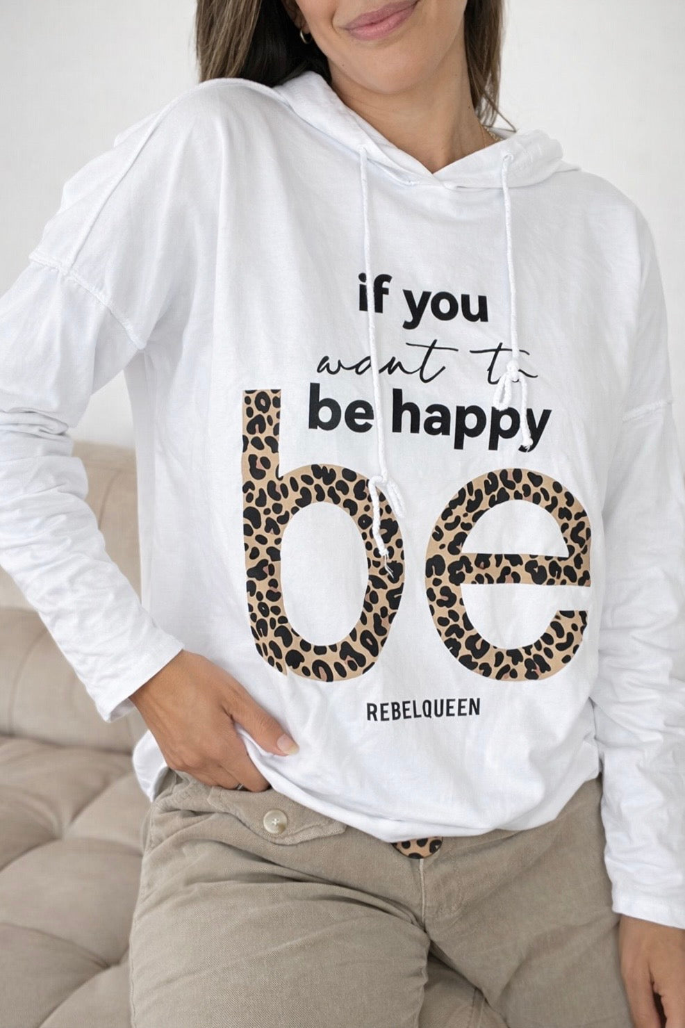Este buzo de onda sport–casual es ideal para sumar comodidad y estilo a cualquier look diario. Con un diseño relajado y moderno, se destaca por su estampa con mensaje “If you want to be happy, be.”, acompañada de detalles en print que le aportan personalidad y un toque urbano.