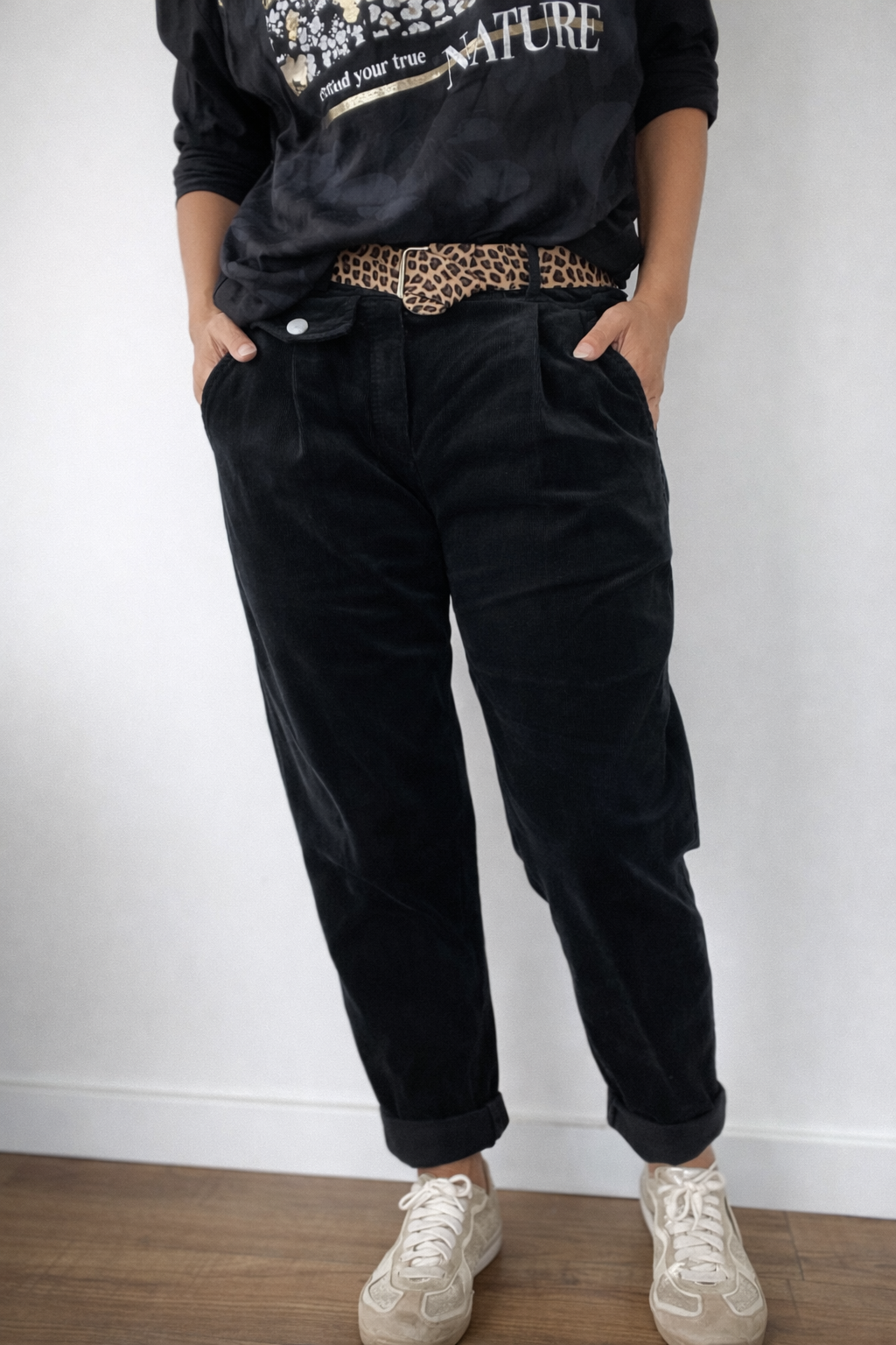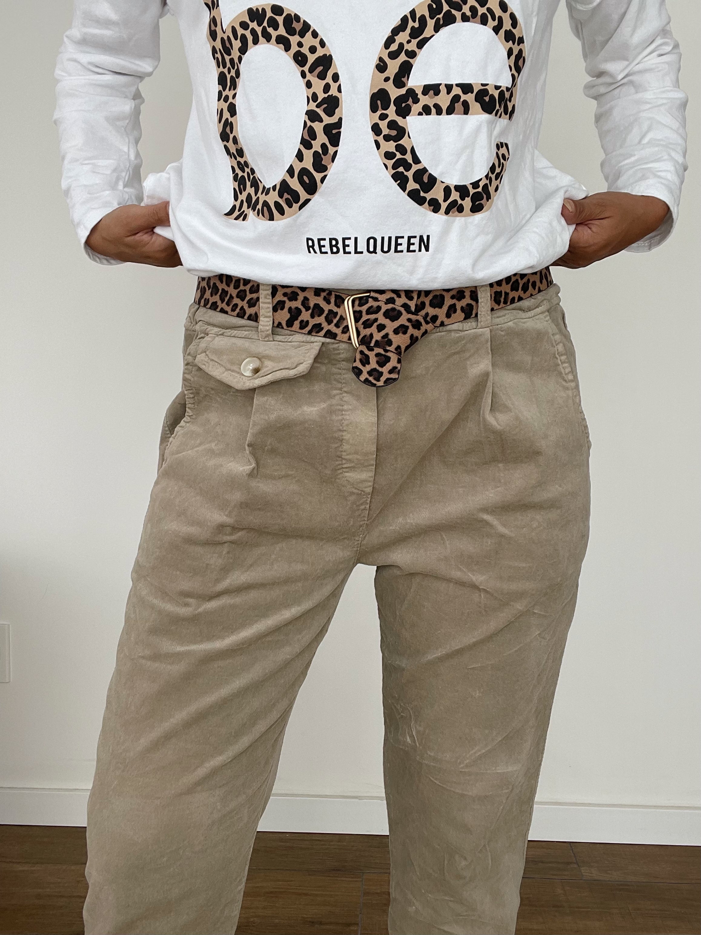 Descubre el pantalón canchero ideal para el día a día de la línea italiana. Confeccionado en una suave mezcla de algodón (98%) y elastano (2%), este pantalón ofrece comodidad y flexibilidad para adaptarse a tu estilo de vida. Su diseño incluye un cinto en animal print que añade un toque de moda y sofisticación, perfecto para la temporada de otoño-invierno. Con un corte ligeramente suelto, este pantalón se convertirá en tu prenda favorita por su versatilidad y confort.