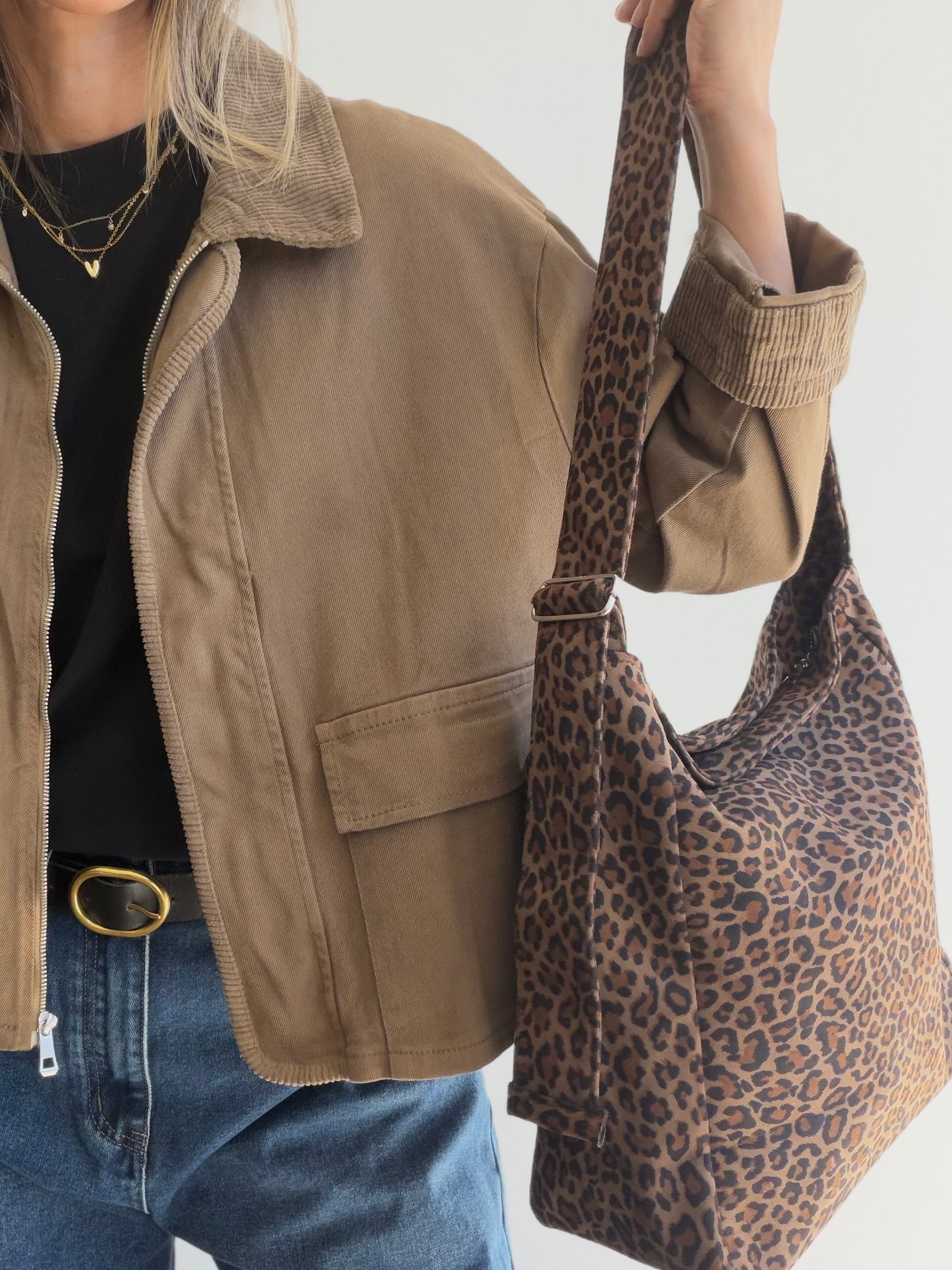 Bolso hobo de animal print con acabado efecto gamuza, suave y sofisticado al tacto. Diseño ligero con asa regulable para mayor comodidad y cierre superior con cremallera. Un básico con carácter que eleva cualquier look.