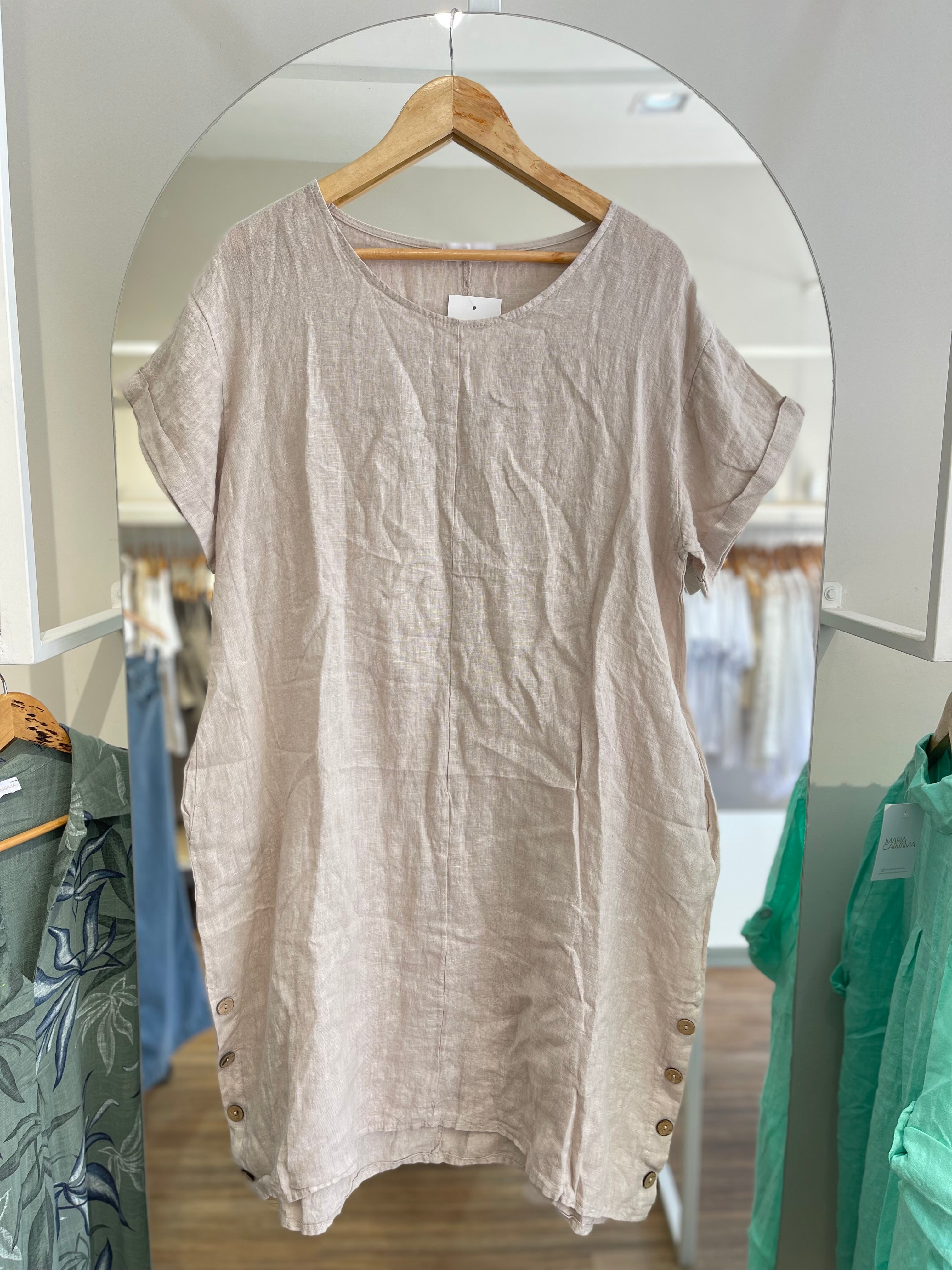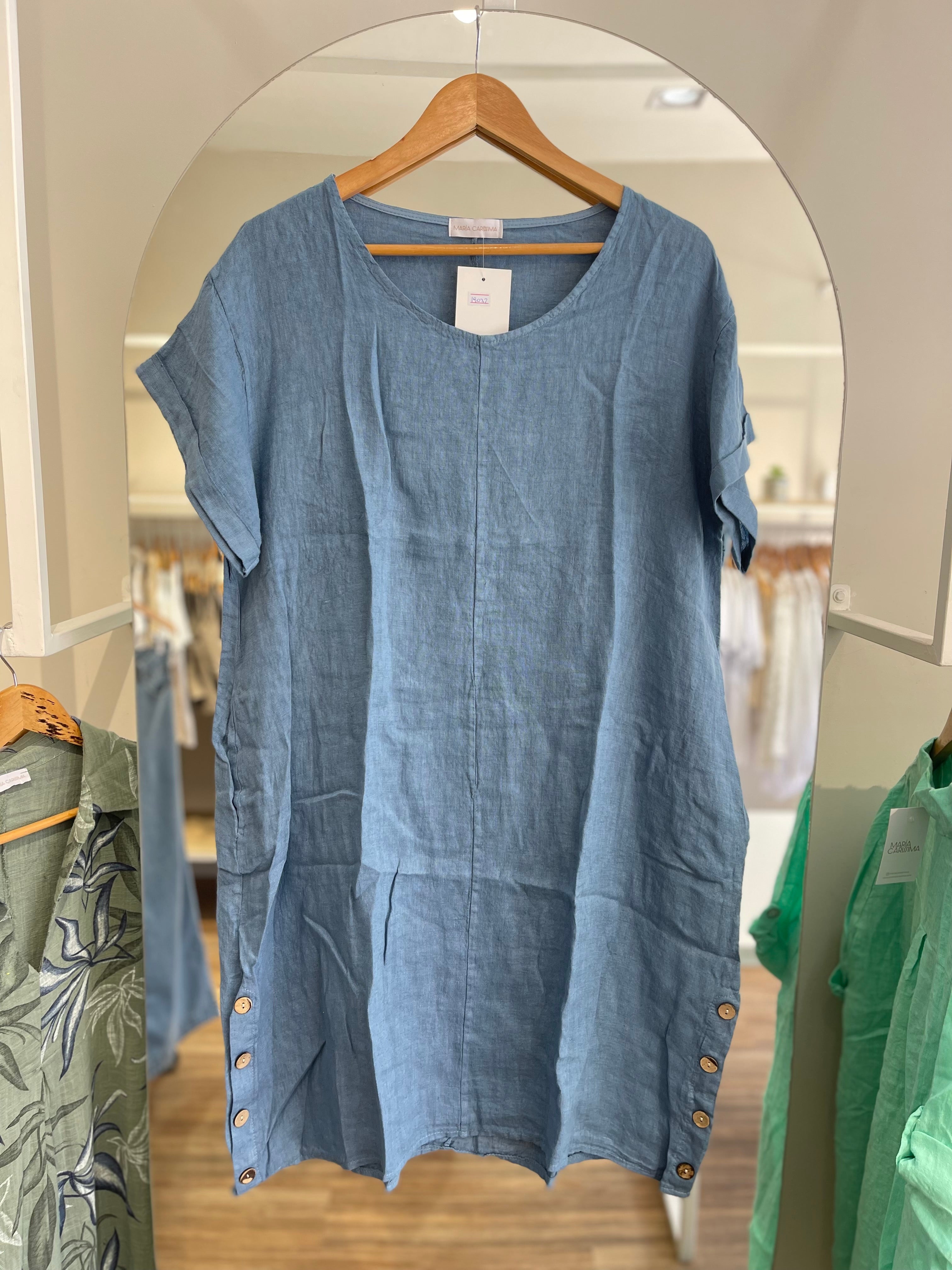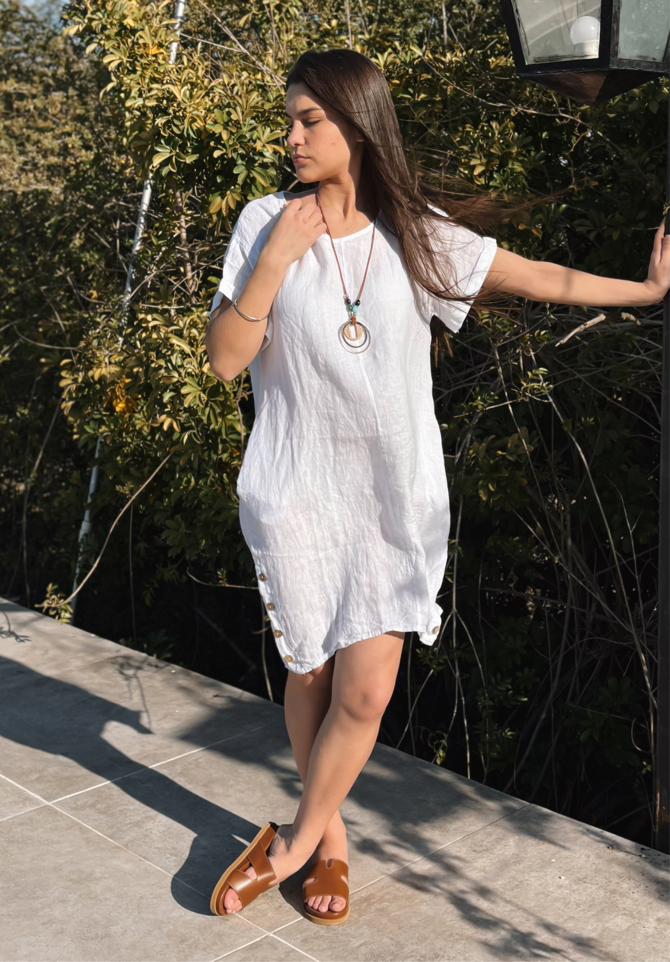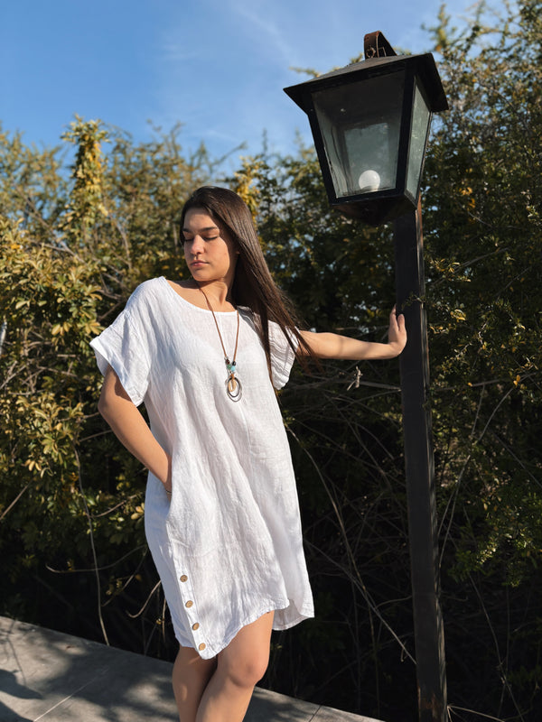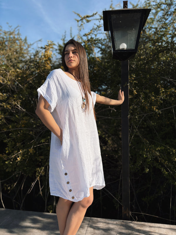 Vestido de lino - línea italiana. Talle único se adapta bien a los talles S al XL aprox